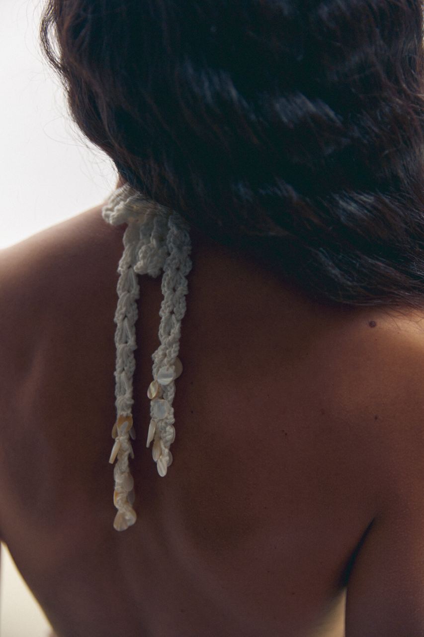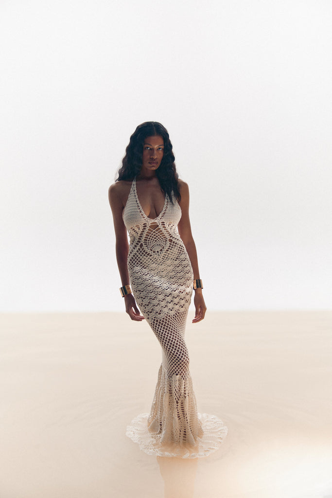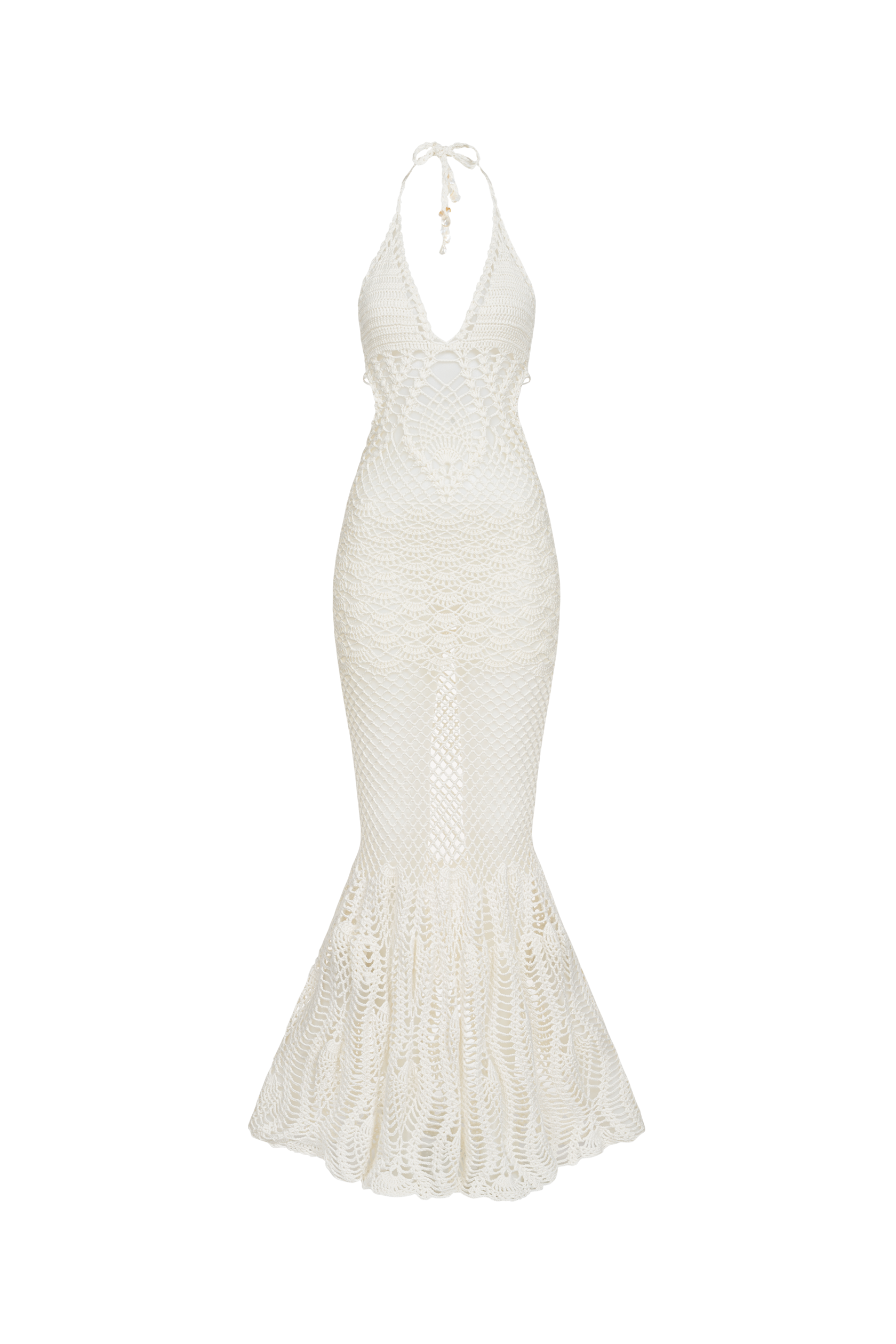 Made using the crochet technique, the maxi dress has ties on the back and neck for a perfect fit. Thanks to its special design and material, the dress does not hinder movements, is very pleasant to the body and brings absolute pleasure in wearing and creating unique looks for its owners.