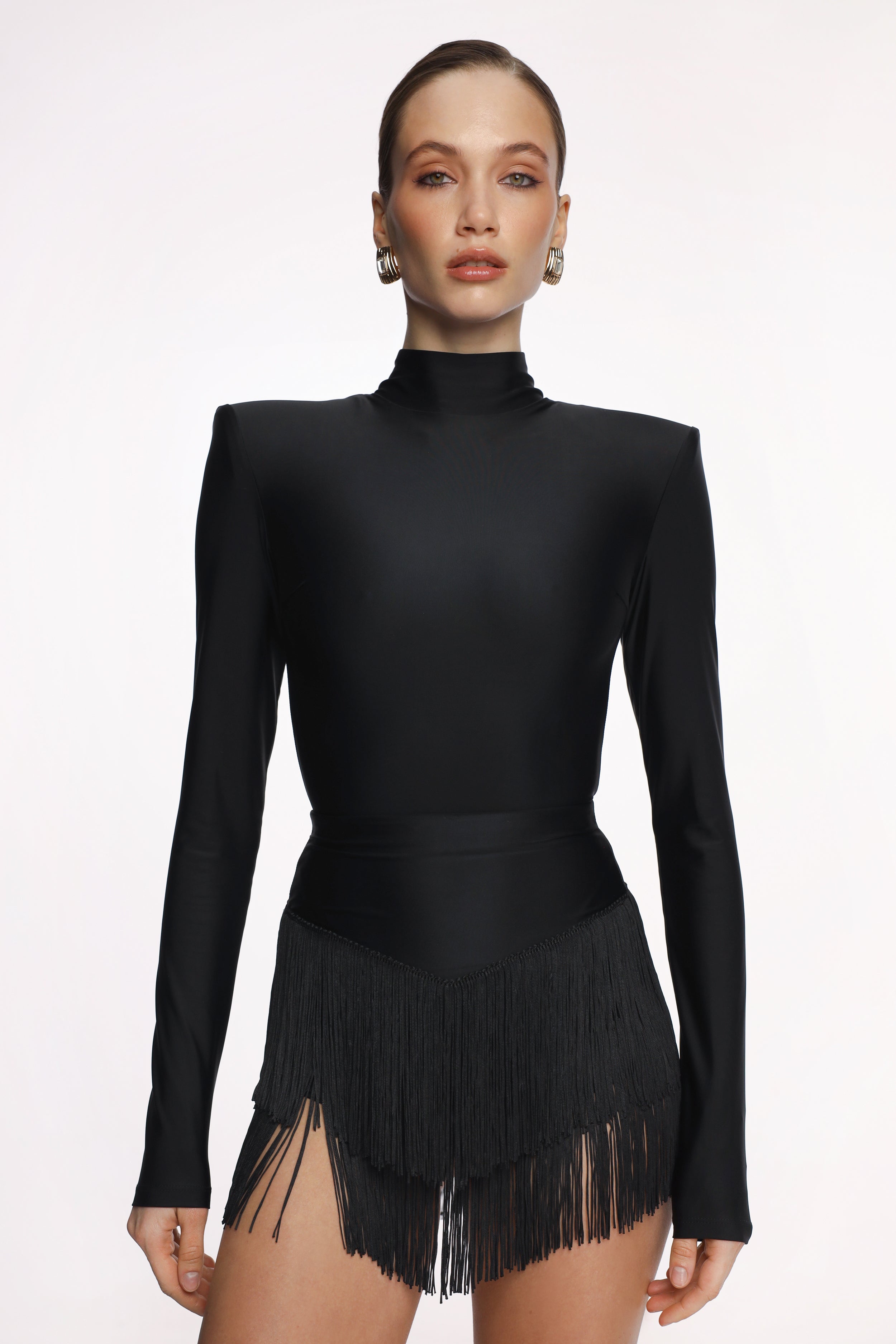 The CHA-CHA KISS skirt from Mise-en-scène collection was designed for movement and attention. Long flowing fringe comes alive in motion, creating a striking visual effect that highlights the rhythm of the body and makes the dance even more expressive.