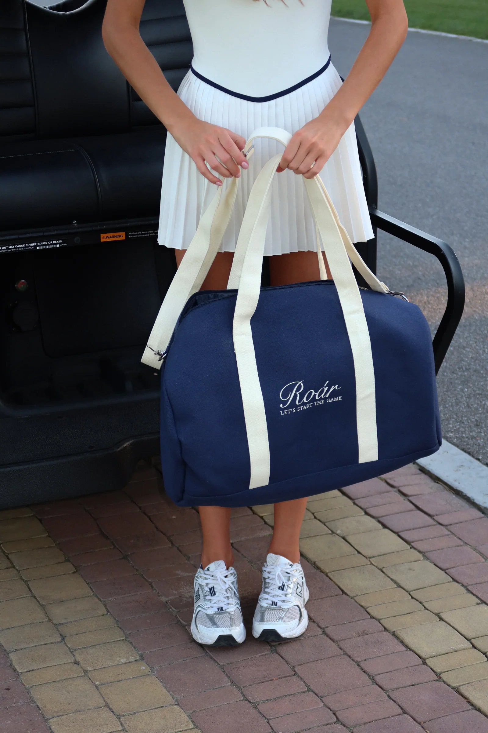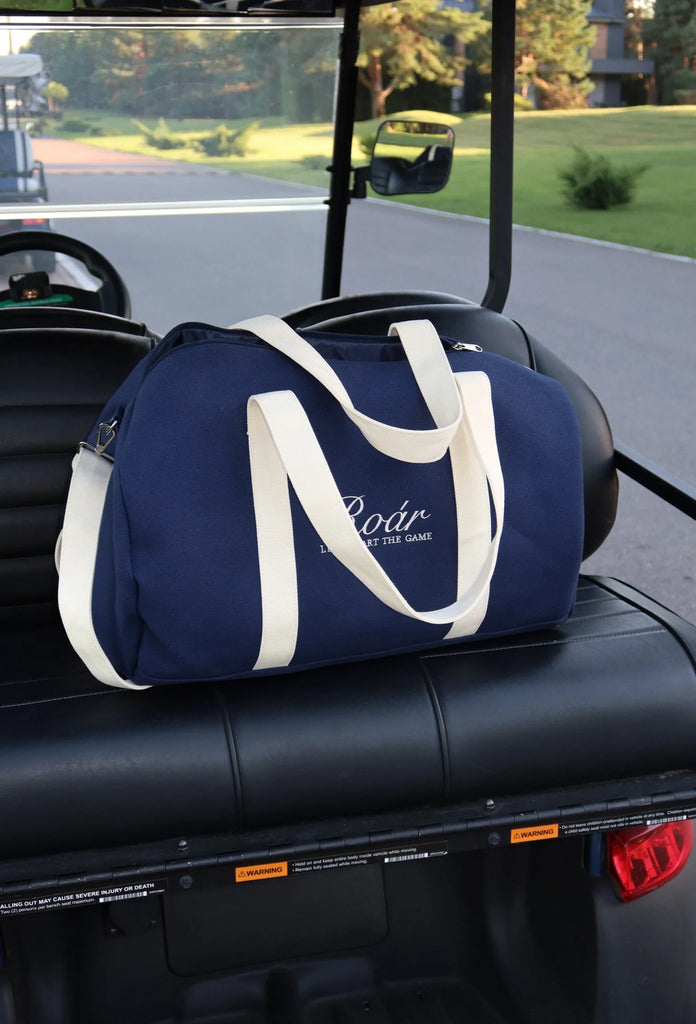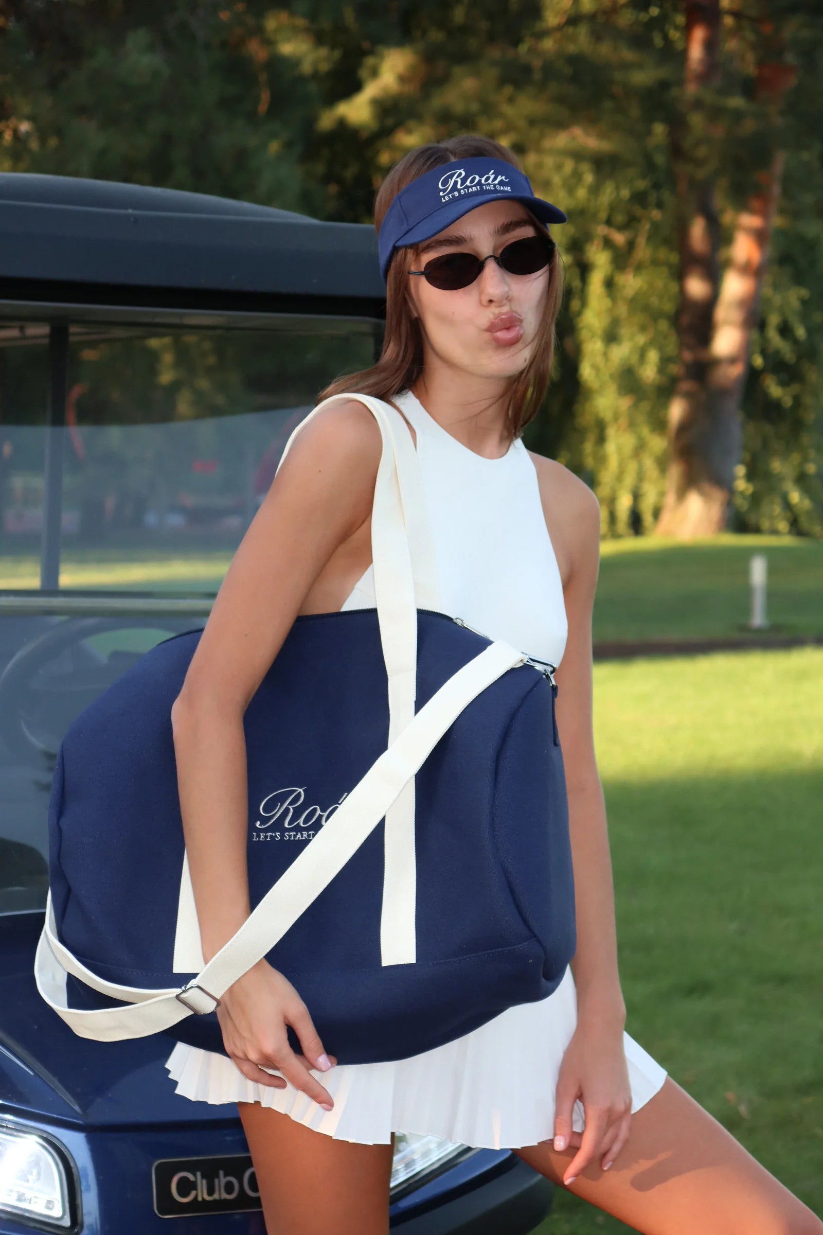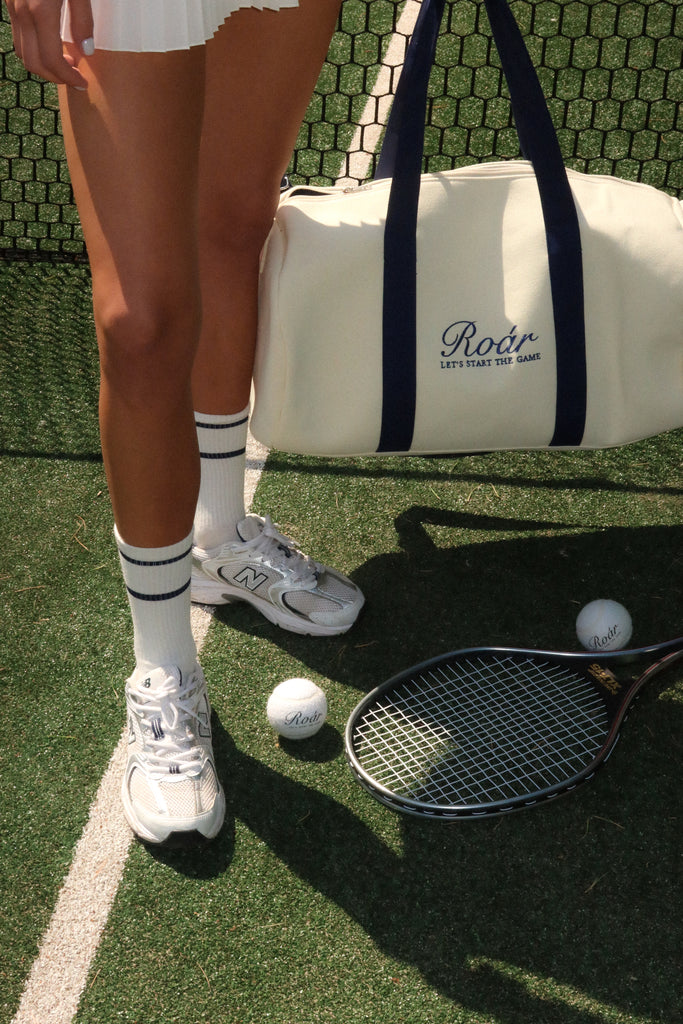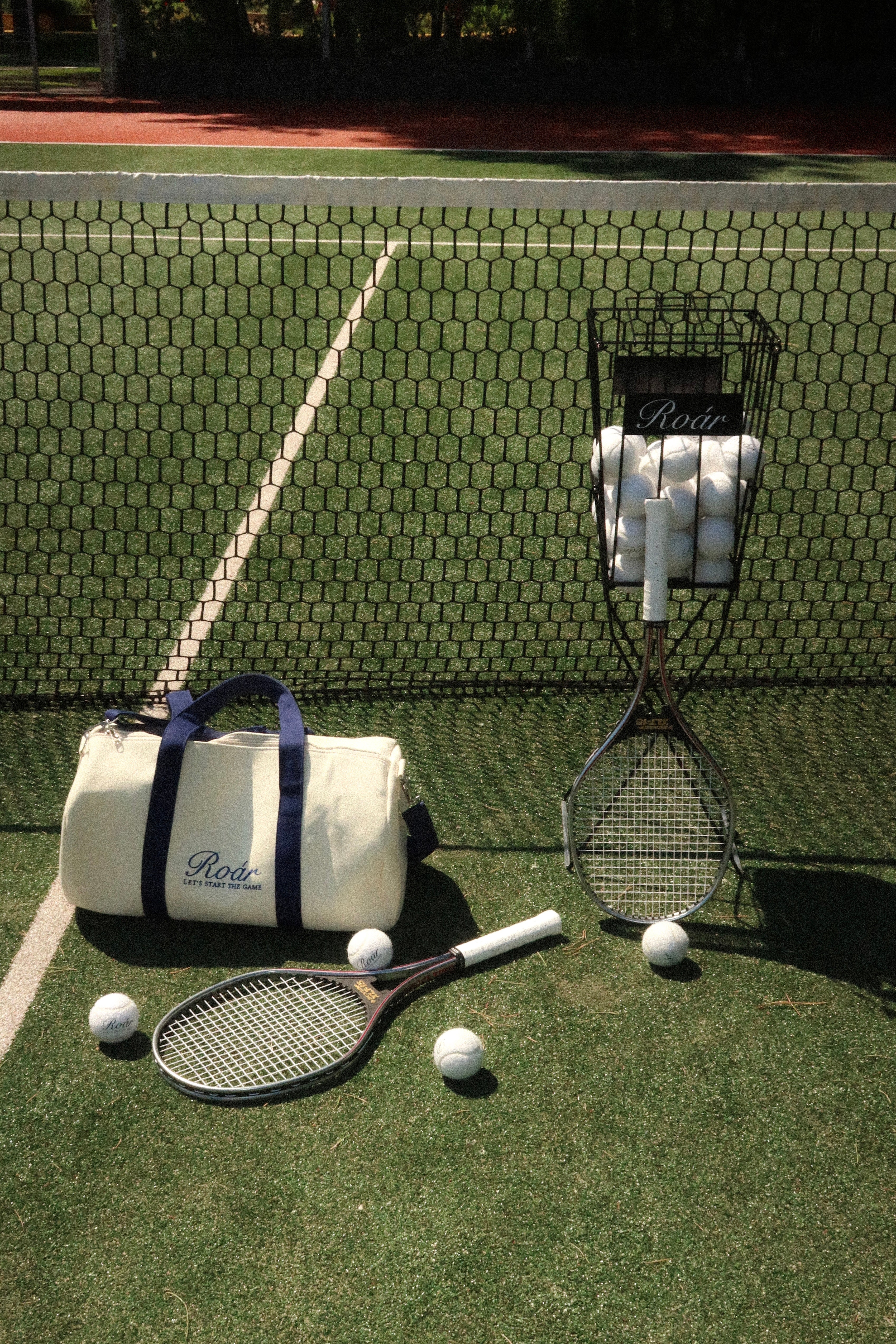 A classic essential with a modern edge. The ROÁR tennis bag combines clean design with bold navy accents for a timeless, sporty look. Crafted from durable canvas, it’s roomy enough to fit your gear, shoes, and off-court essentials—whether you’re heading to the court, the gym, or a weekend getaway.