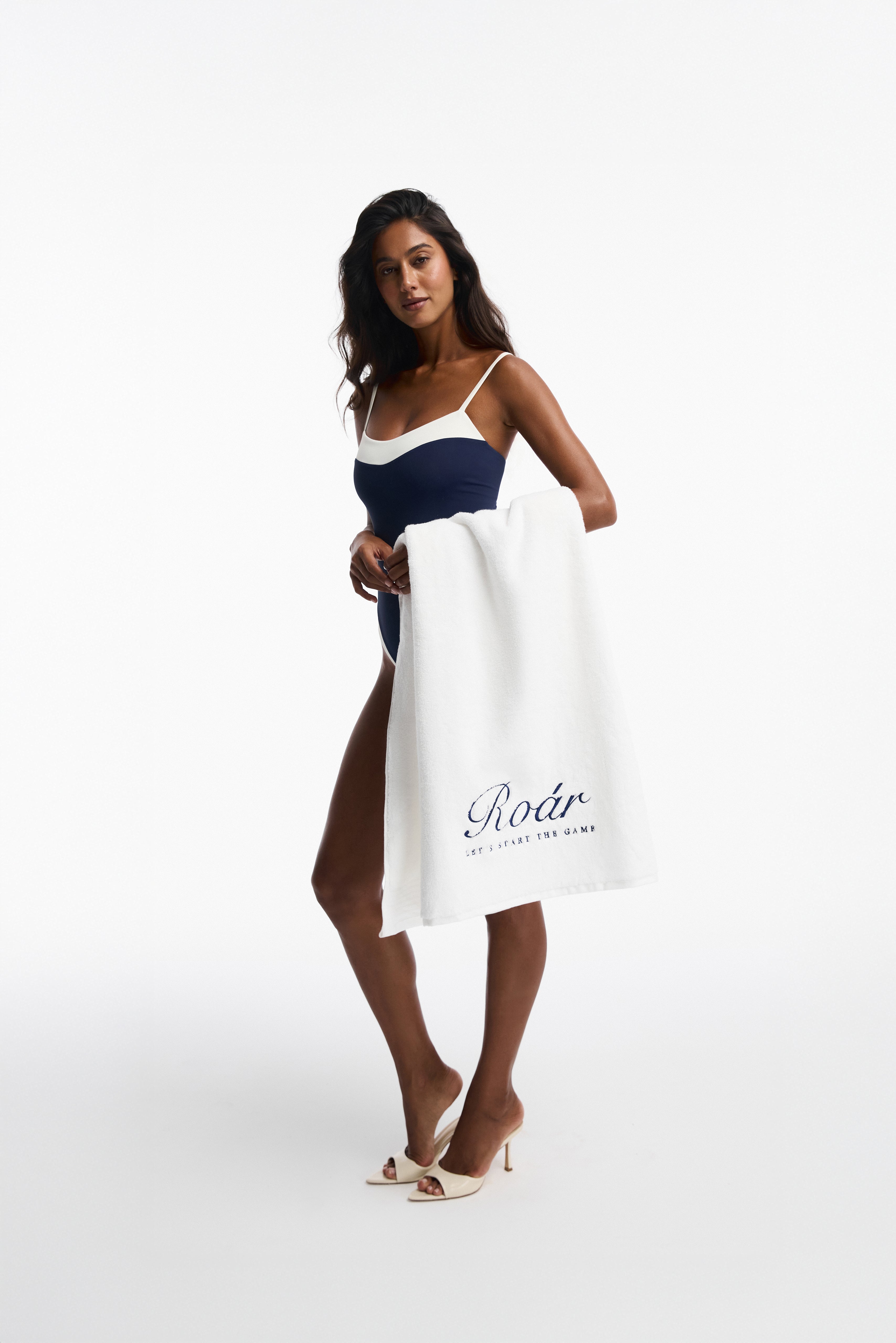 Our signature towels come in two sizes — a compact one for the court, beach or face, and a larger one for lounging in comfort. Made from premium cotton in classic white, they are exceptionally soft, absorbent, and durable.