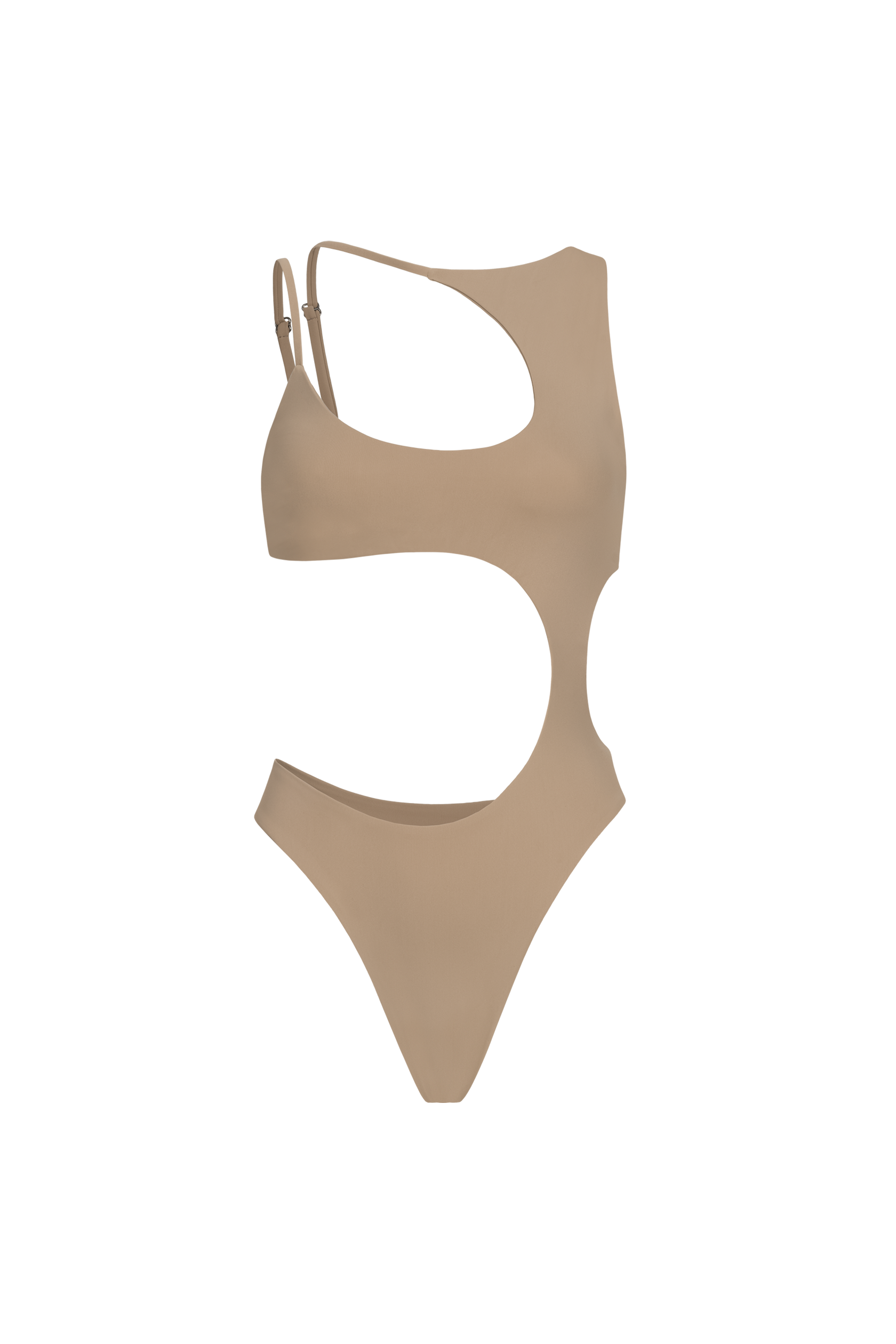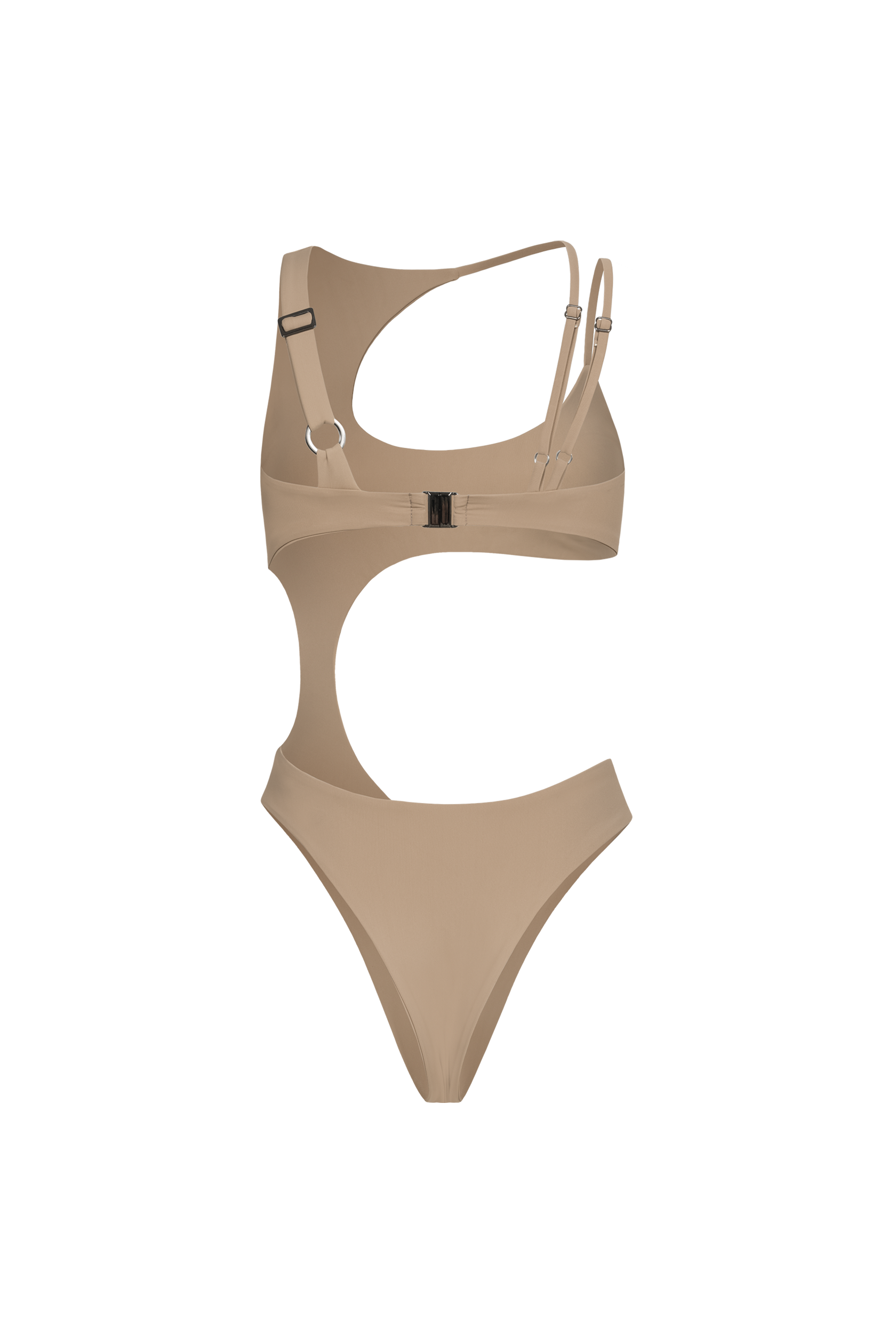 Tył zachwyca przyciągającym wzrok detalem: po jednej stronie szerokie ramiączko, po drugiej – dwa cienkie, regulowane paski.
