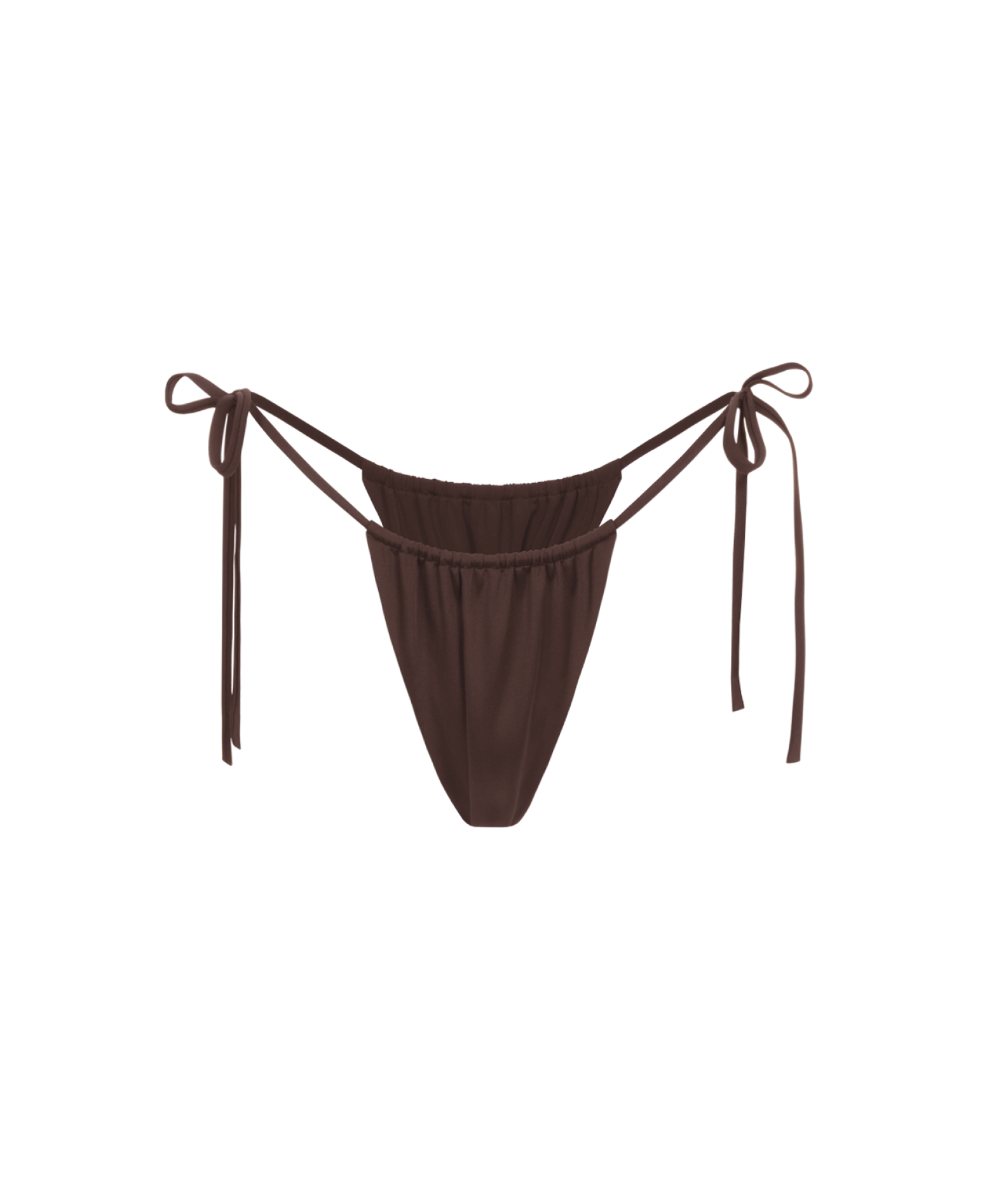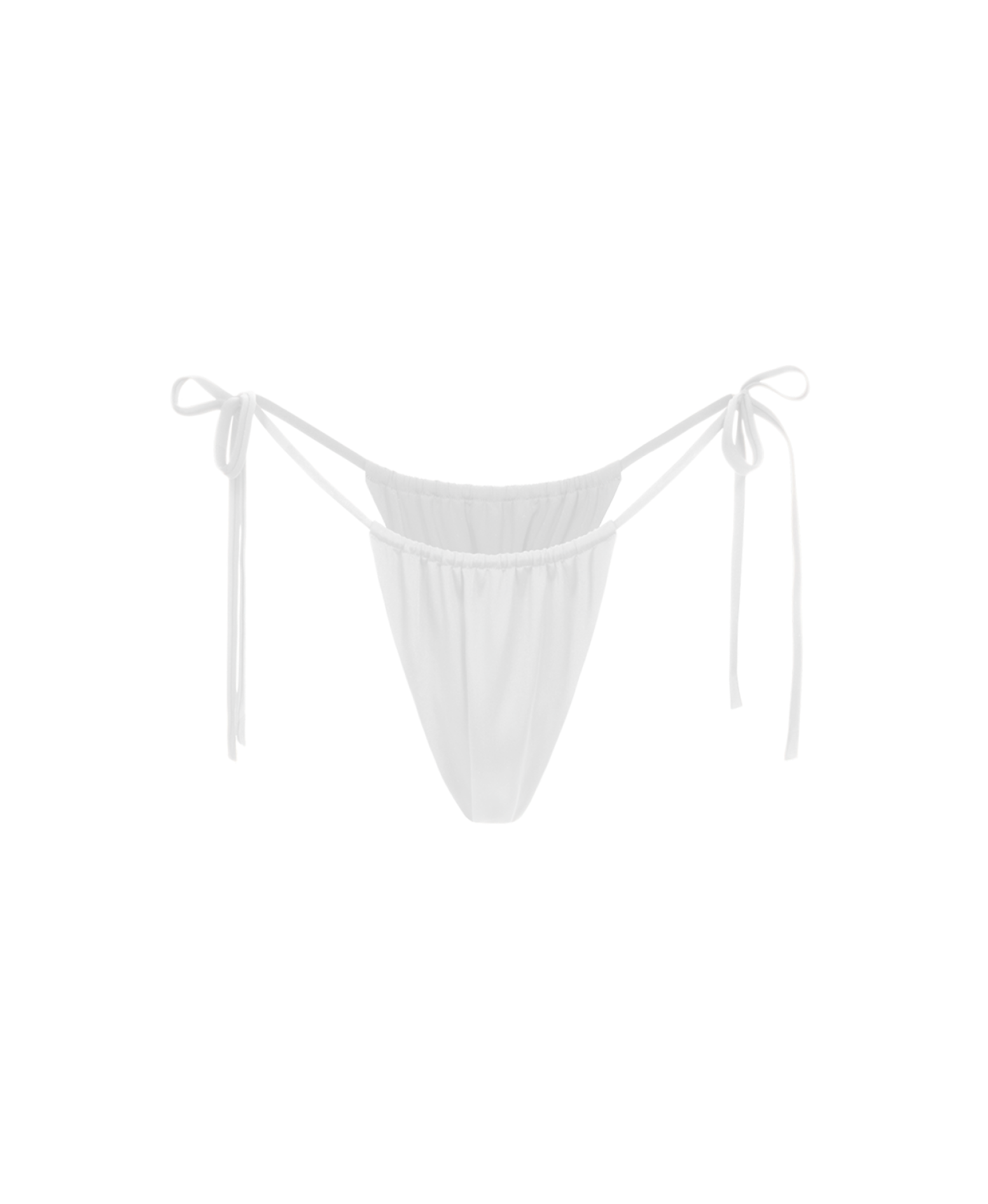 Wybierz ten model, jeśli chcesz podkreślić długie nogi i linię talii. Fason typu stringi został uszyty z podwójnego biflexu, z regulacją z przodu i z tyłu za pomocą cienkich wiązań.